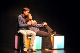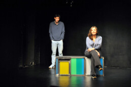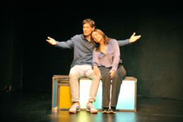 L’auteur est joueur et choisit de faire incarner tous ces personnages par les deux comédiens, nous faisant ainsi virevolter d’une situation à une autre en un claquement de doigts.